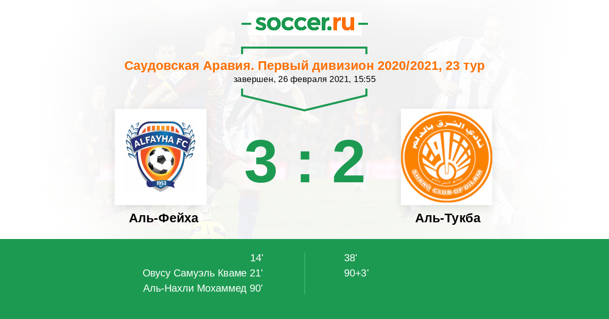Протокол матча Аль-Фейха против Аль-Тукба