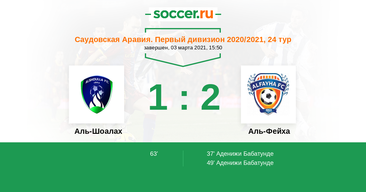 Протокол матча Аль-Шоалах против Аль-Фейха