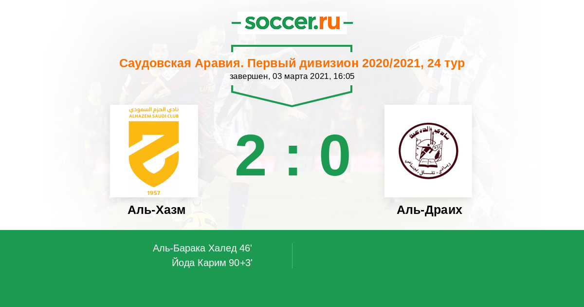 Протокол матча Аль-Хазм против Аль-Драих