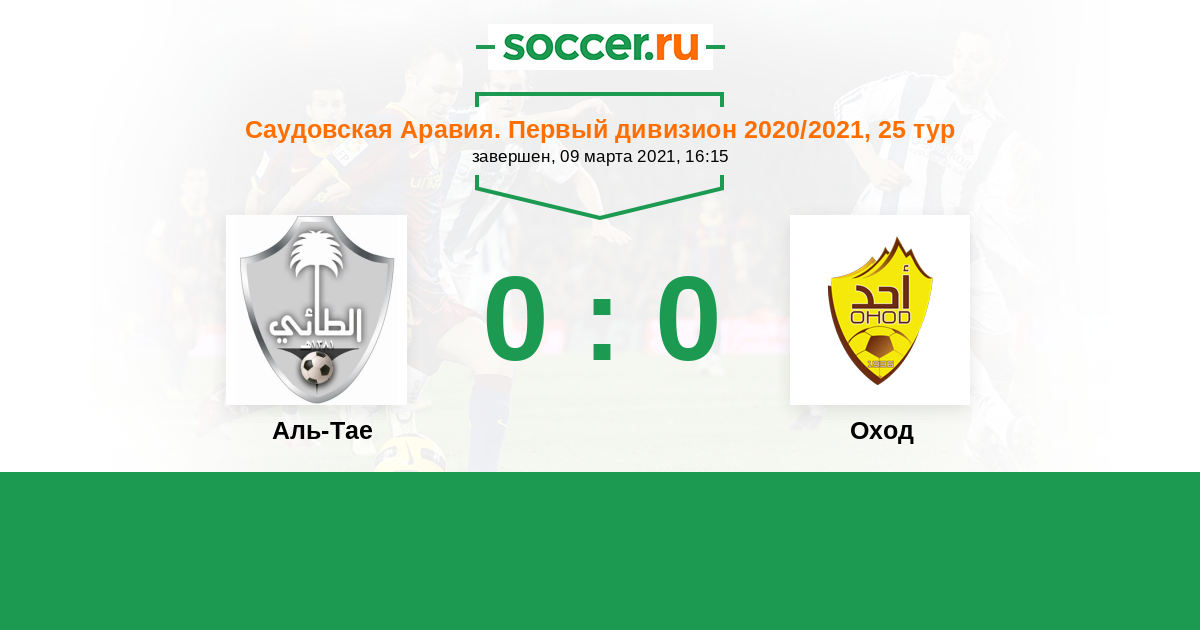 Саудовская Аравия. Первый дивизион 31.08.2020 Аль-Тае Логотип футбольный клуб Аль-Тае (Хаиль) 1:1 Логотип футбольный клуб Оход (Медина) Оход