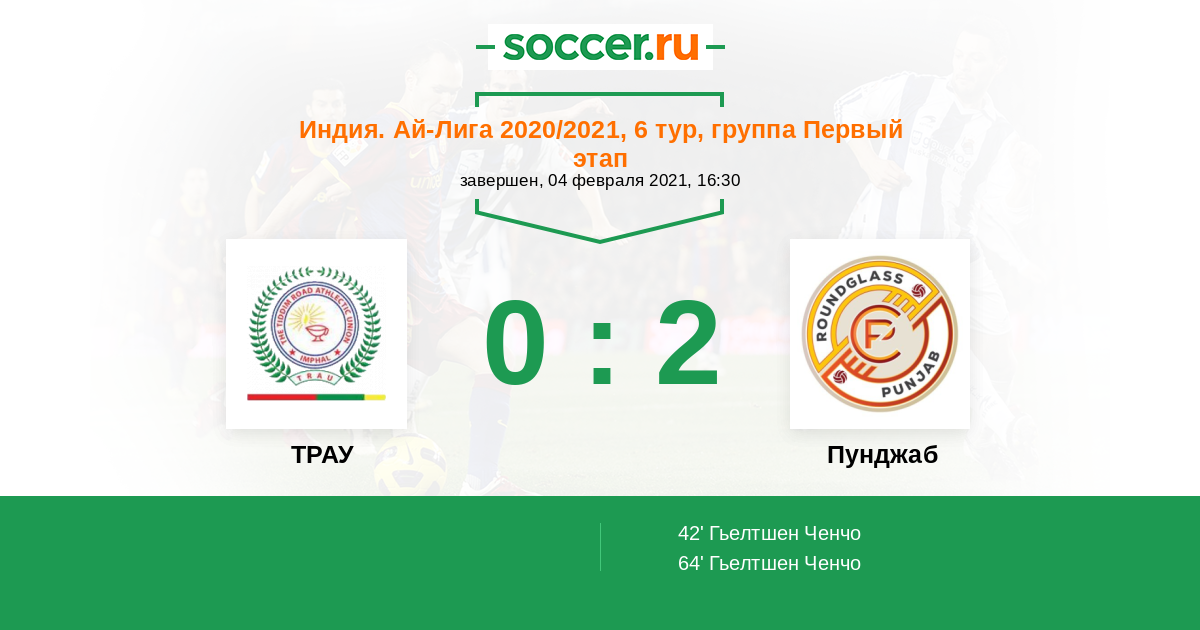 64' (0:2) Гьелтшен Ченчо (7) (Сингх Притам (23))