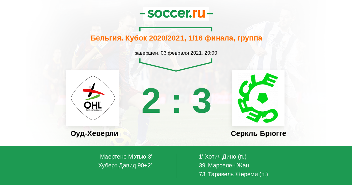 Протокол матча Оуд-Хеверли против Серкль Брюгге