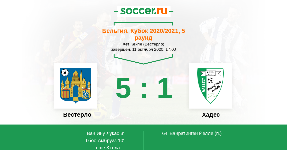 Протокол матча Вестерло против Хадес