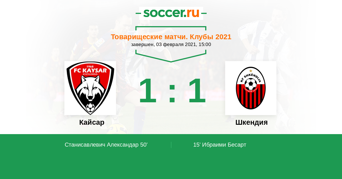 Протокол матча Кайсар против Шкендия