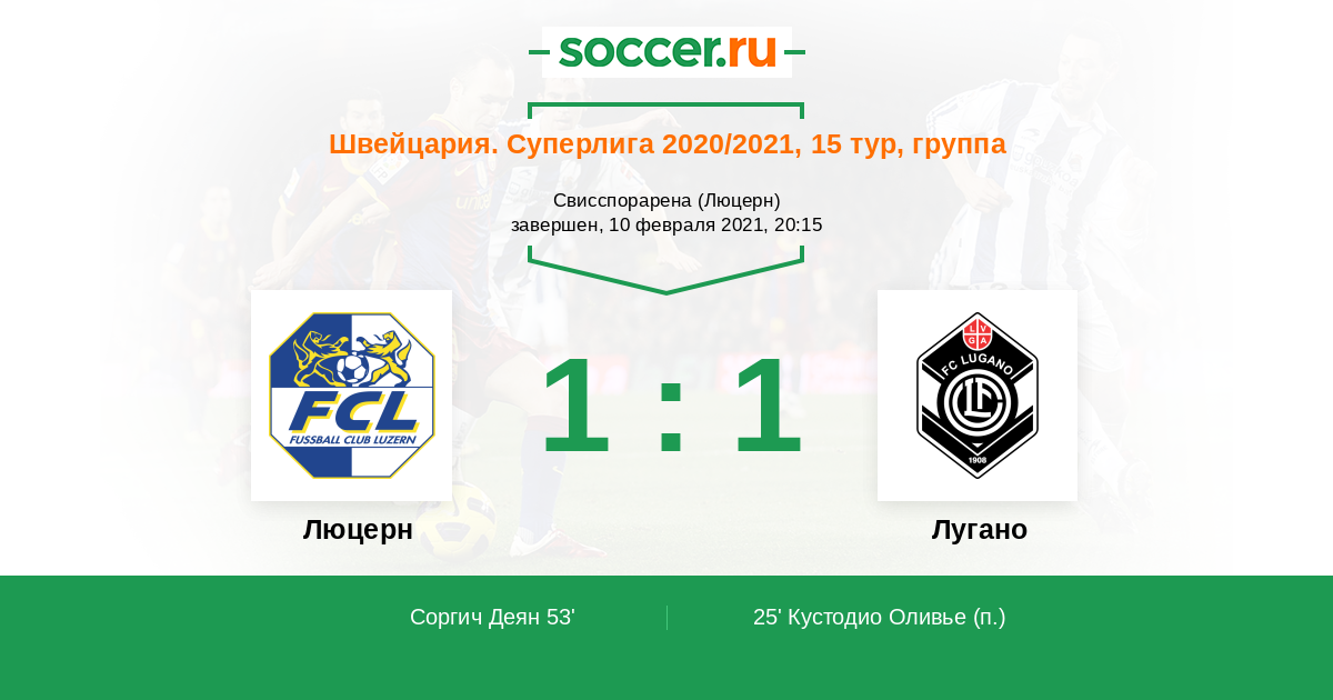 Протокол матча Люцерн против Лугано