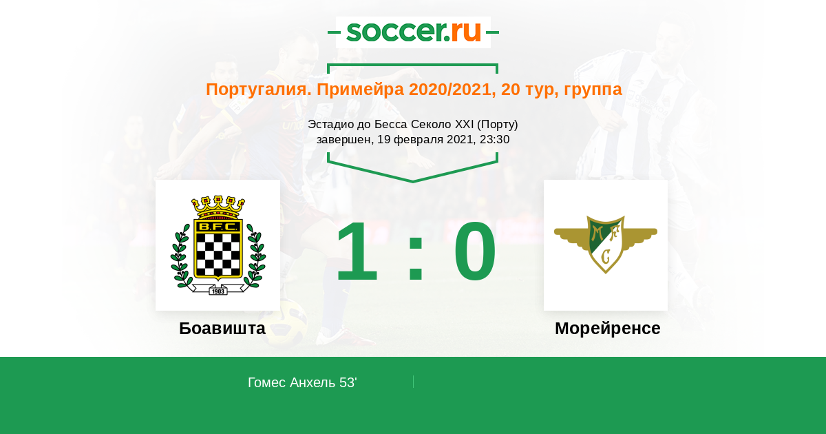 Протокол матча Боавишта против Морейренcе