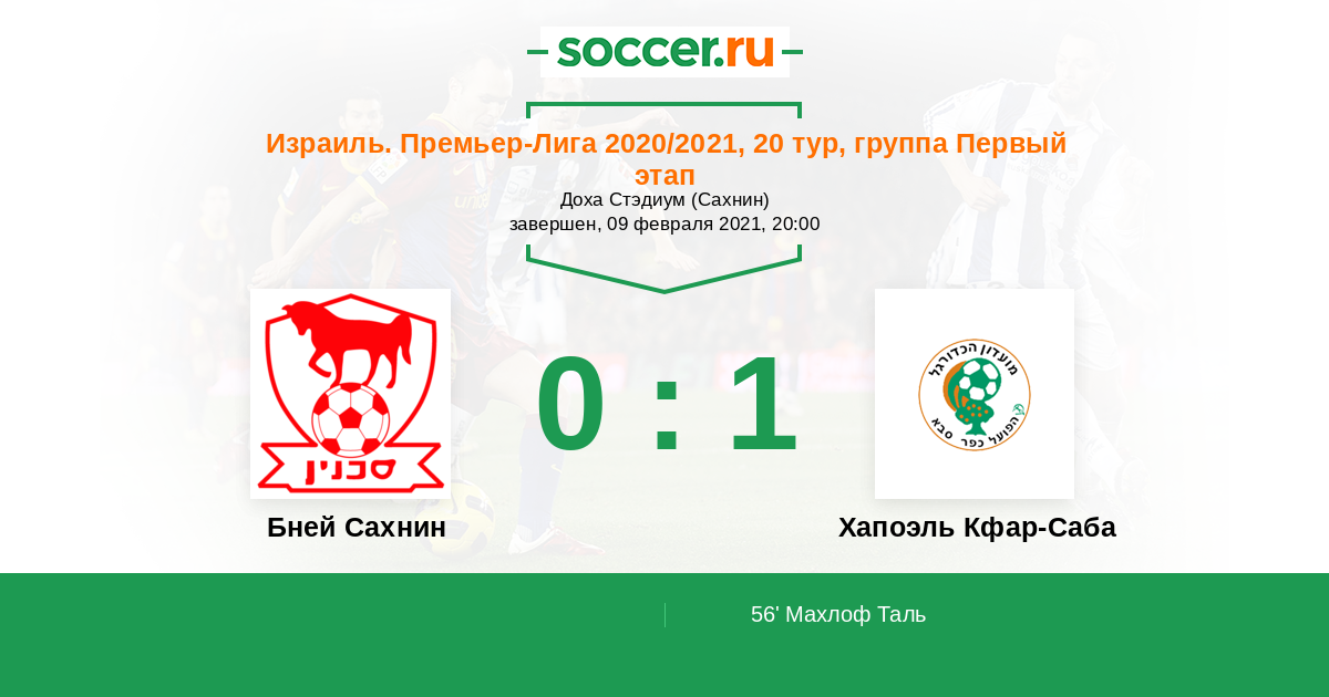 Протокол матча Бней Сахнин против Хапоэль Кфар-Саба