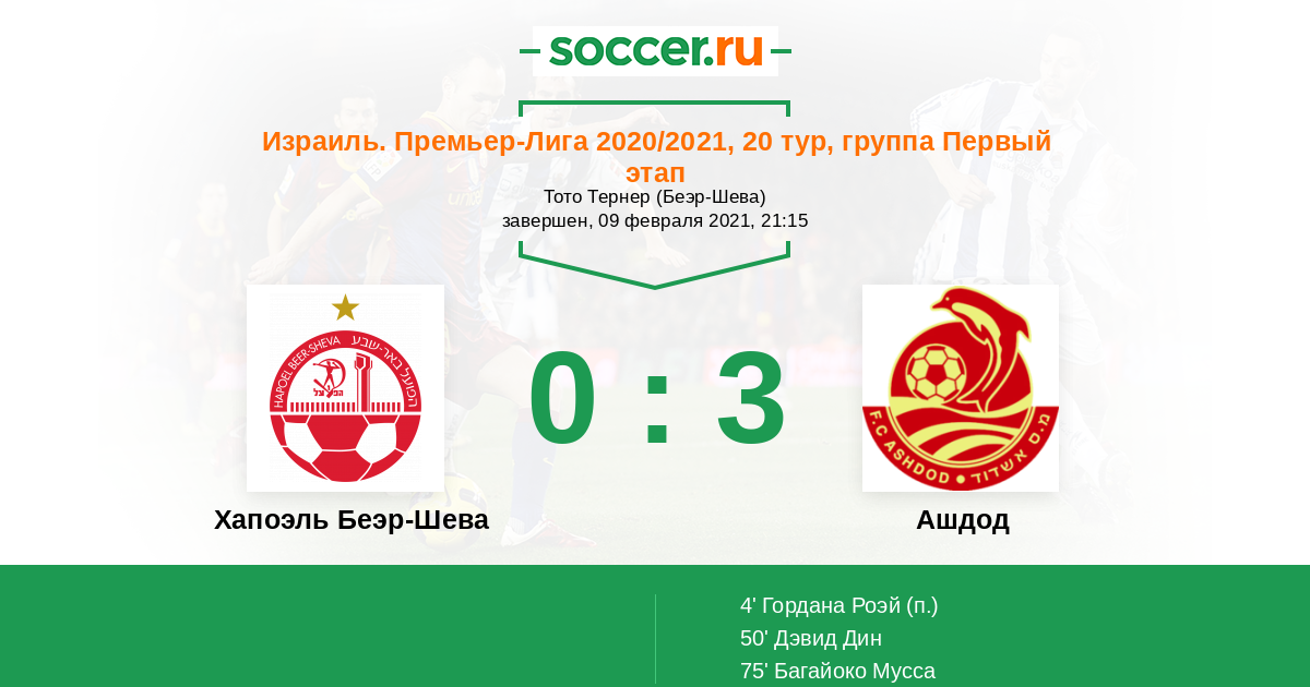 Протокол матча Хапоэль Беэр-Шева против Ашдод