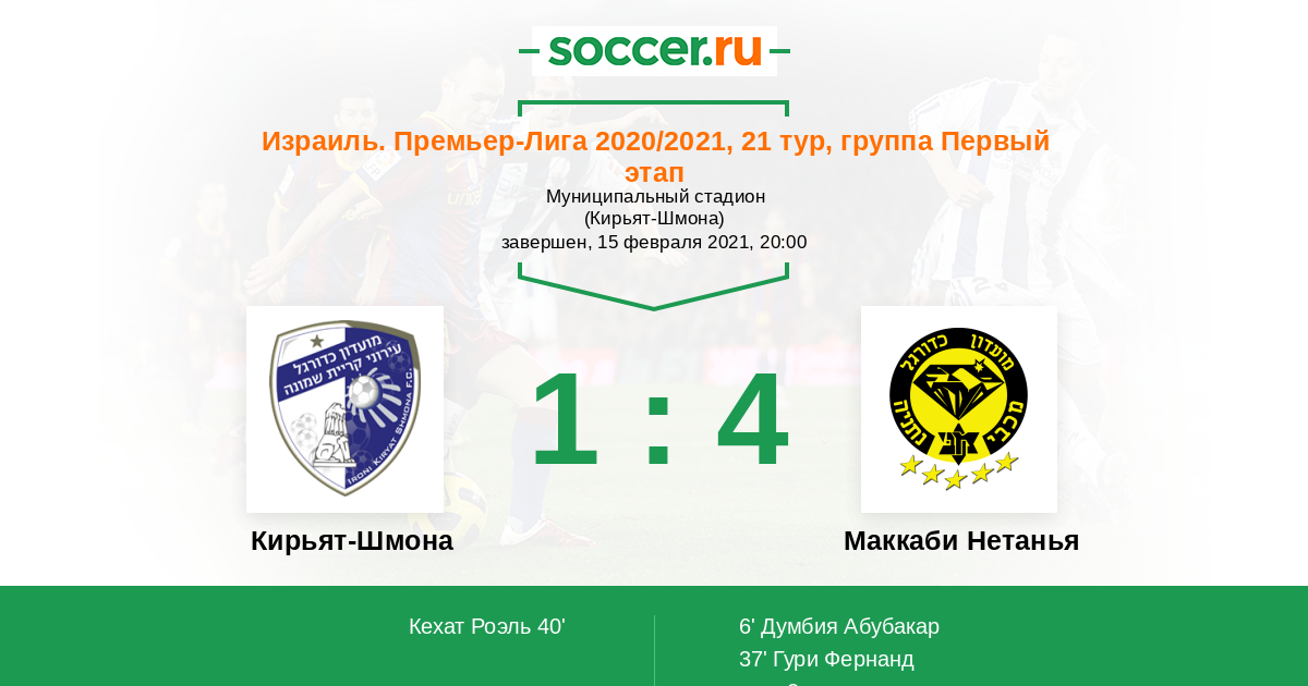Протокол матча Кирьят-Шмона против Маккаби Нетанья