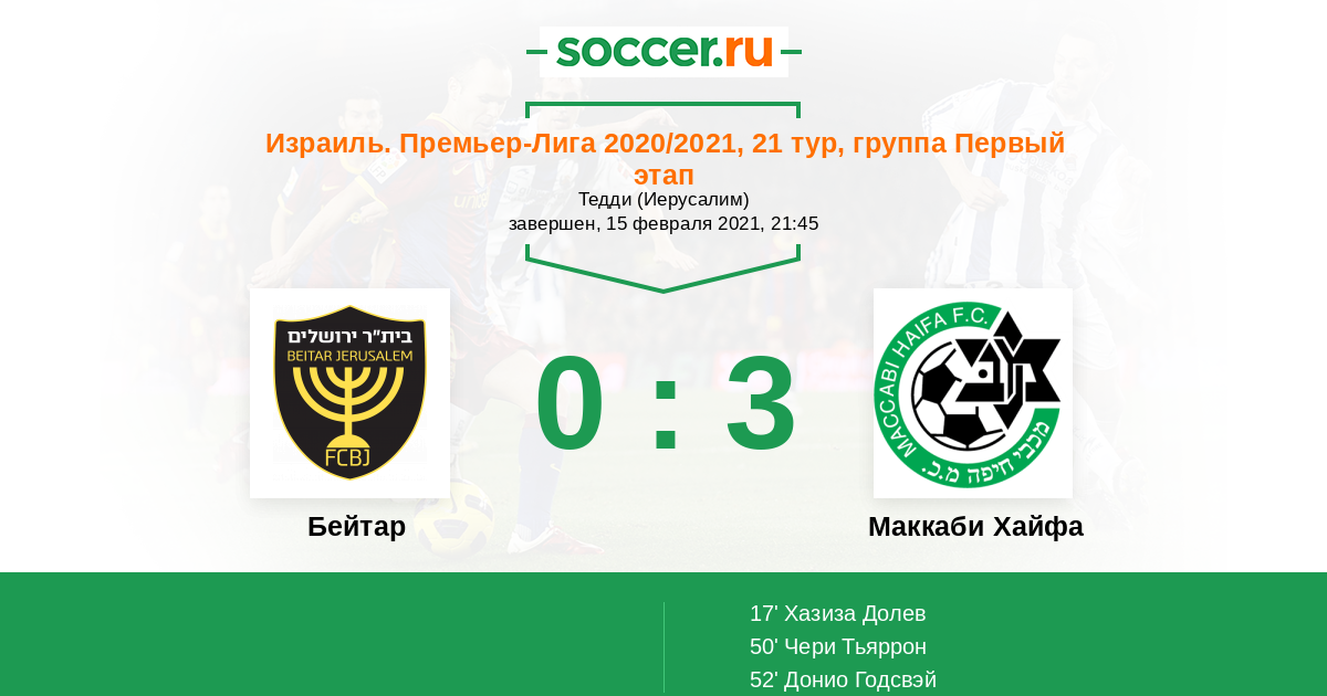 Протокол матча Бейтар против Маккаби Хайфа