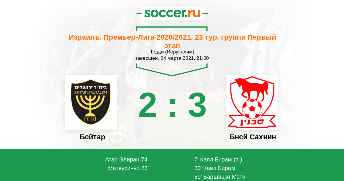 Протокол матча Бейтар против Бней Сахнин