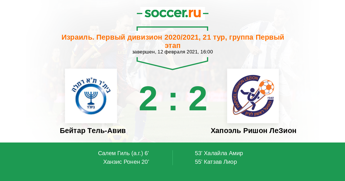 Протокол матча Бейтар Тель-Авив против Хапоэль Ришон ЛеЗион
