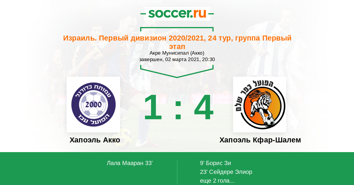 Протокол матча Хапоэль Акко против Хапоэль Кфар-Шалем
