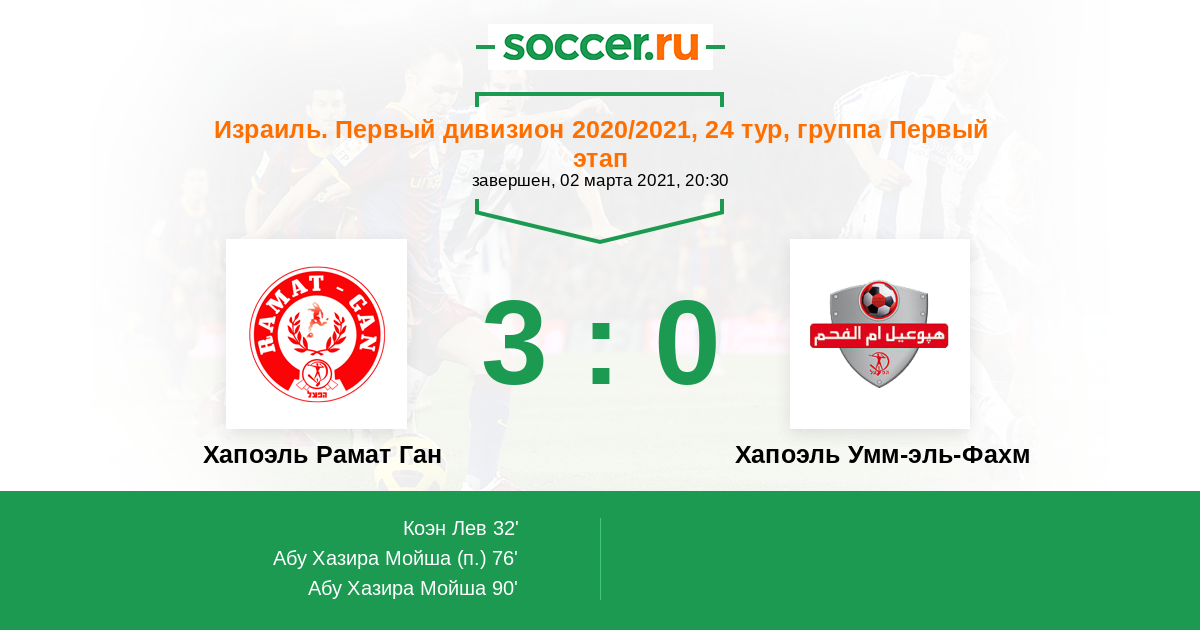 Протокол матча Хапоэль Рамат Ган против Хапоэль Умм-эль-Фахм