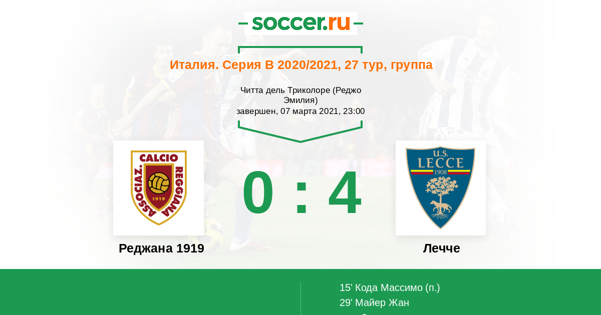 Протокол матча Реджана 1919 против Лечче