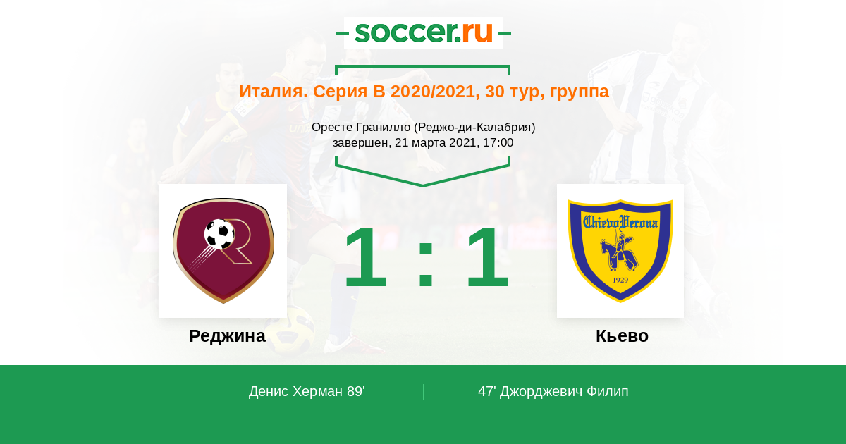 Протокол матча Реджина против Кьево