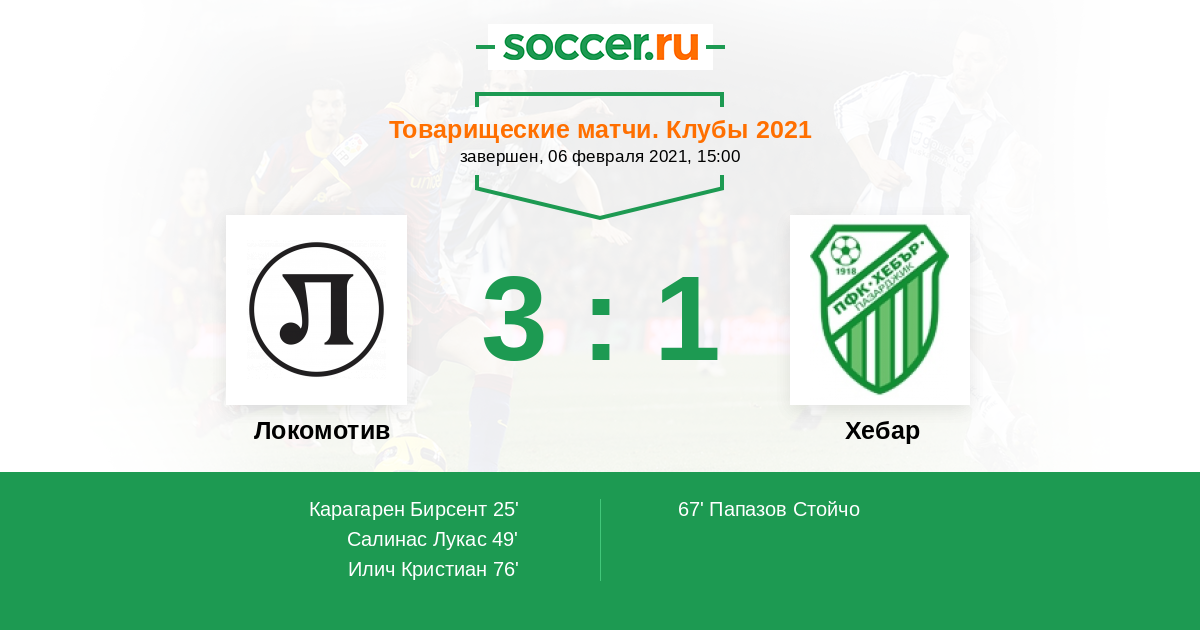 Протокол матча Локомотив против Хебар