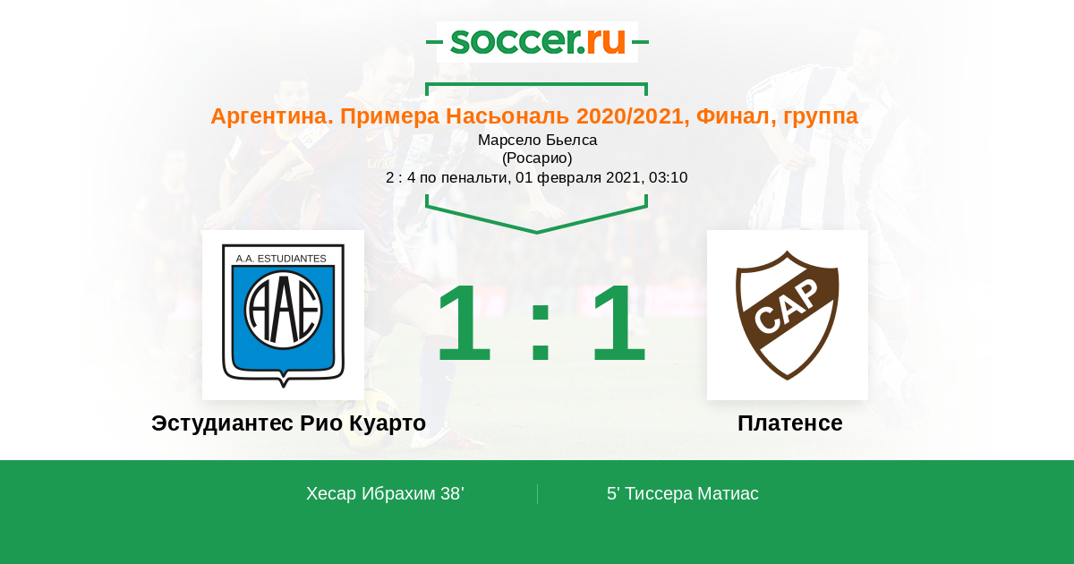 Протокол матча Эстудиантес Рио Куарто против Платенсе