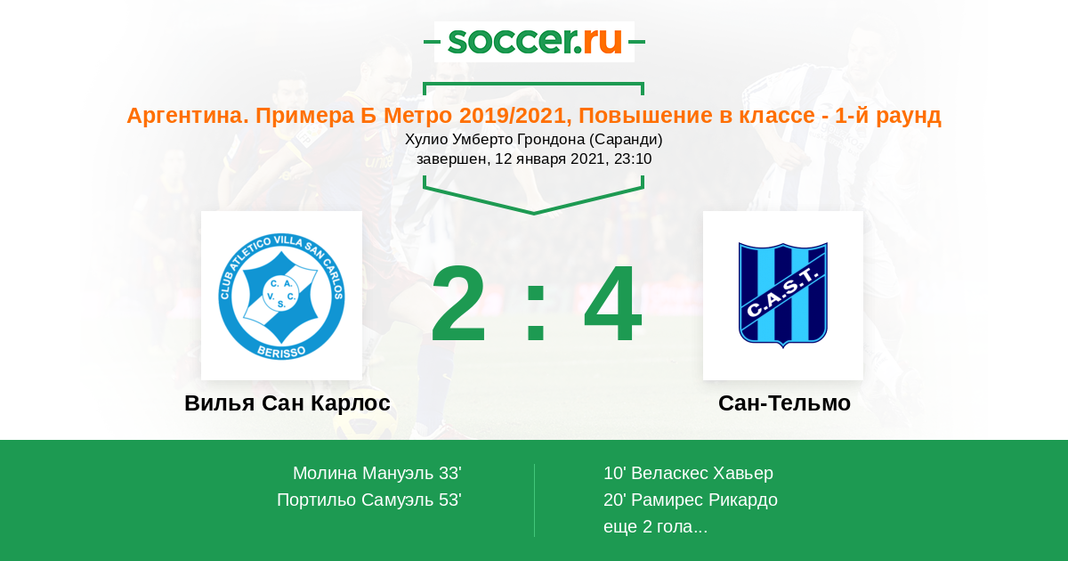 Протокол матча Вилья Сан Карлос против Сан-Тельмо