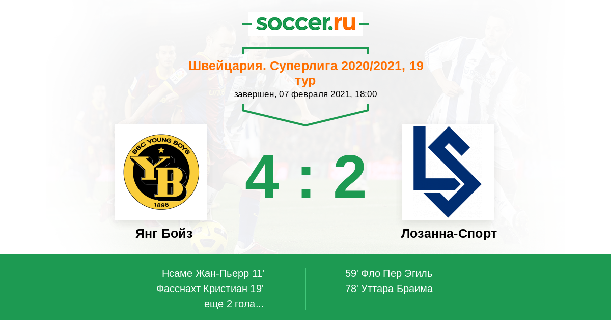Протокол матча Янг Бойз против Лозанна-Спорт