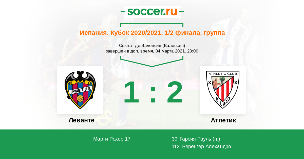 Протокол матча Леванте против Атлетик