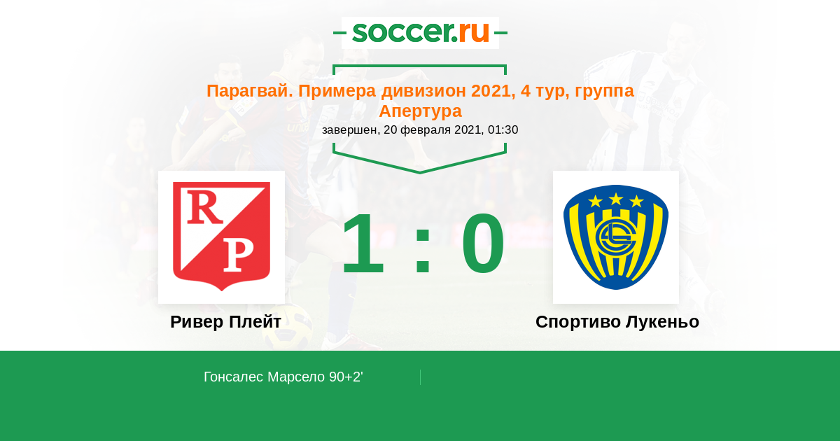 Протокол матча Ривер Плейт против Спортиво Лукеньо