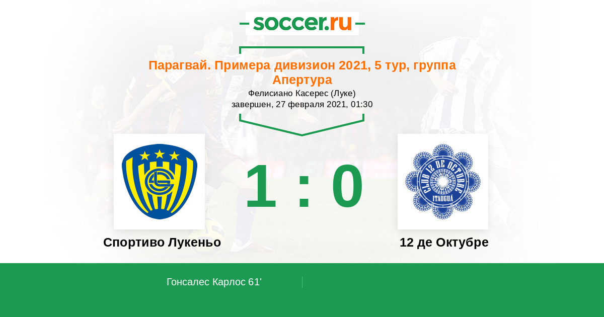 Протокол матча Спортиво Лукеньо против 12 де Октубре