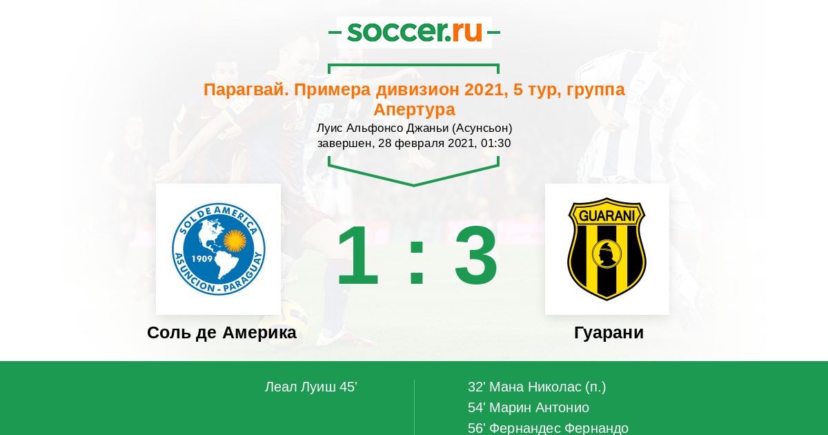 54' (1:2) Марин Антонио (21) (Франко Хуан Хосе (6))