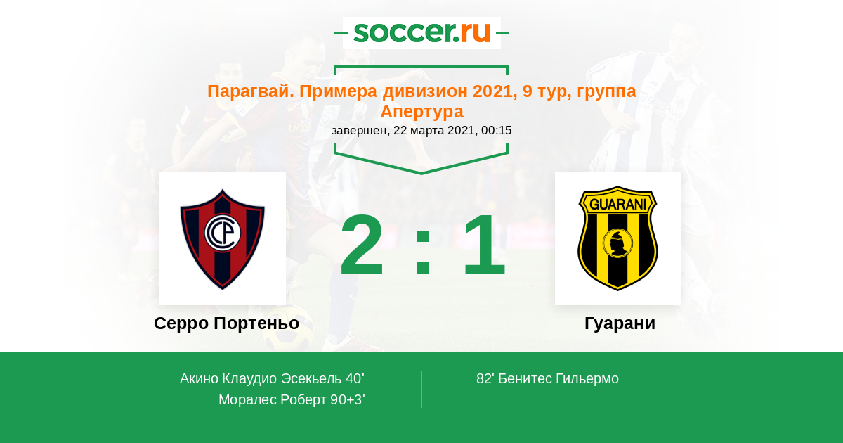Протокол матча Серро Портеньо против Гуарани