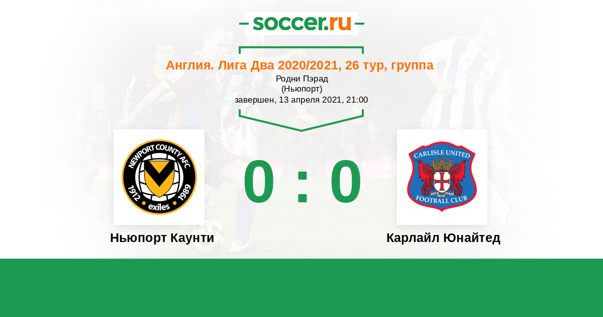 Протокол матча Ньюпорт Каунти против Карлайл Юнайтед