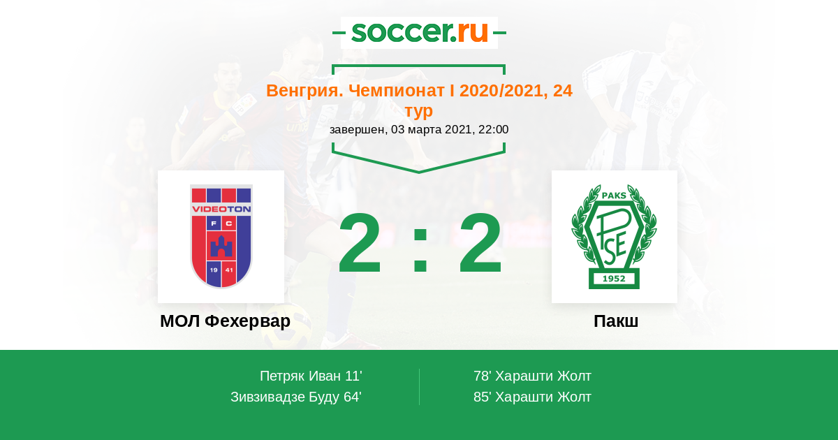 Протокол матча МОЛ Фехервар против Пакш