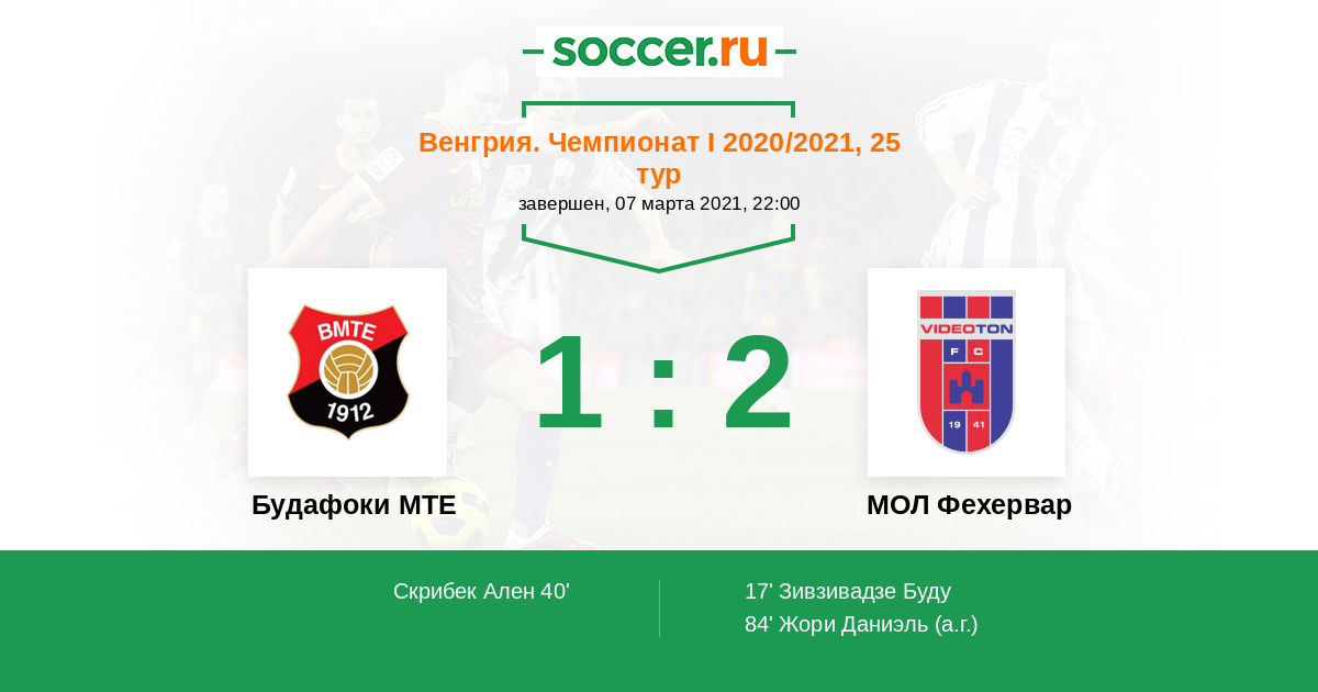 Протокол матча Будафоки МТЕ против МОЛ Фехервар