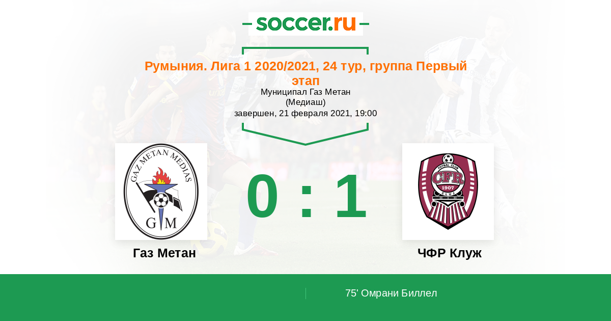 Протокол матча Газ Метан против ЧФР Клуж