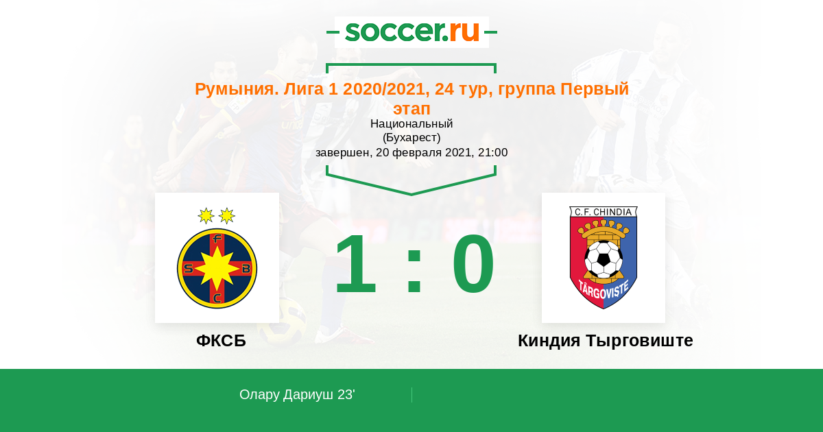 23' (1:0) Олару Дариуш (27)