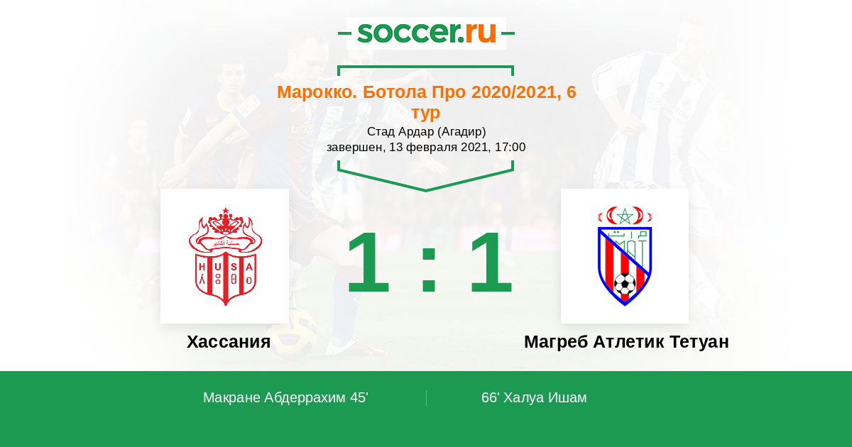 Протокол матча Хассания против Магреб Атлетик Тетуан