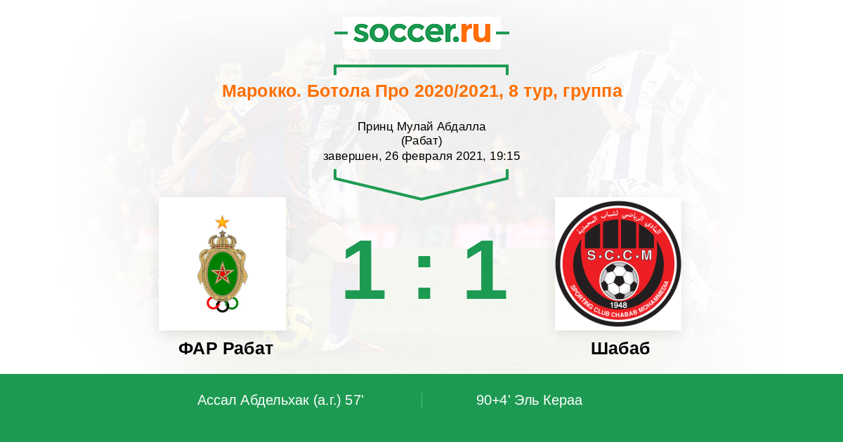 Протокол матча ФАР Рабат против Шабаб
