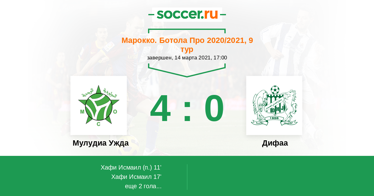 Протокол матча Мулудиа Ужда против Дифаа
