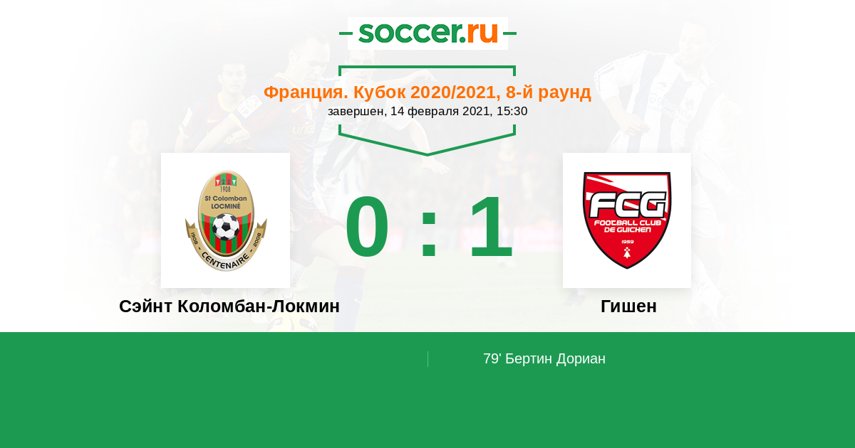 Протокол матча Сэйнт Коломбан-Локмин против Гишен