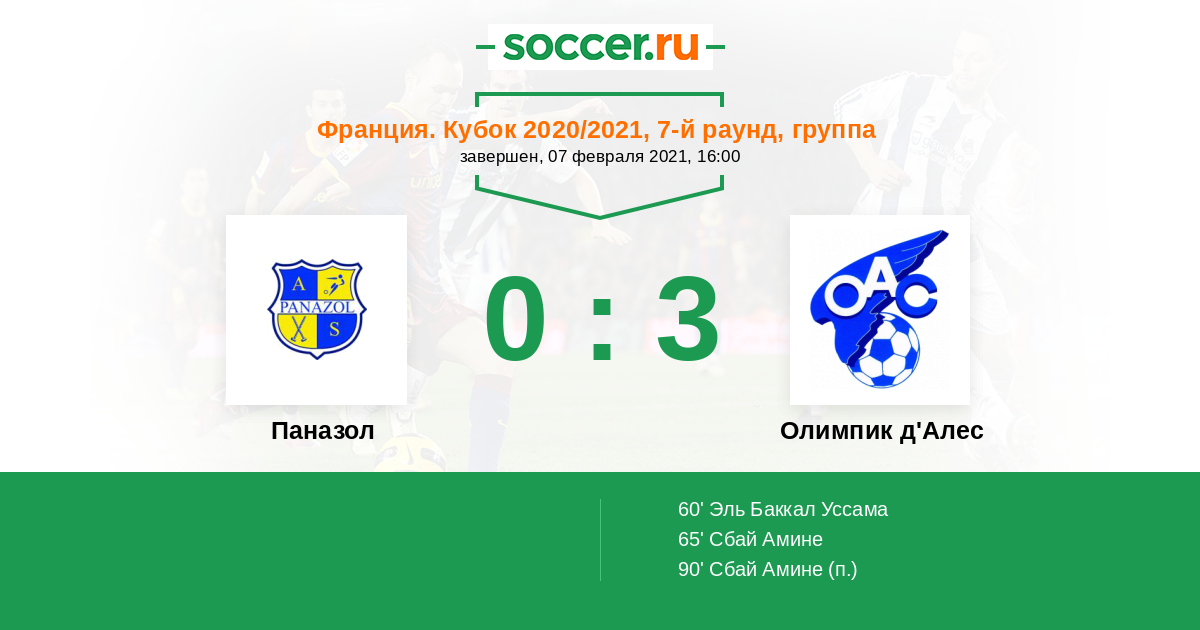 Протокол матча Паназол против Олимпик д'Алес