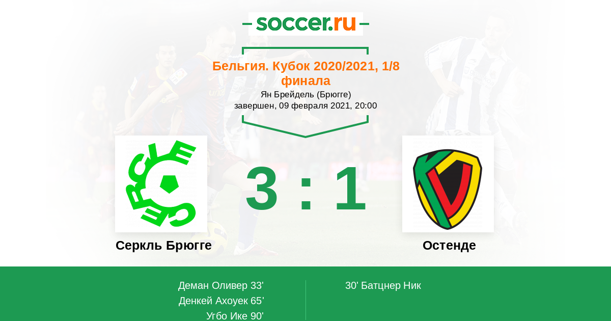 33' (1:1) Деман Оливер (23) (Денкей Ахоуек (12))
