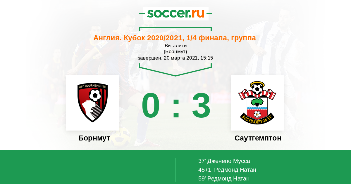 37' (0:1) Дженепо Мусса (12) (Редмонд Натан (11))