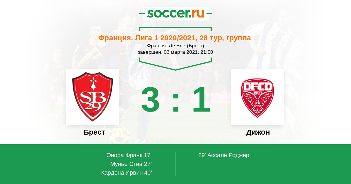Протокол матча Брест против Дижон