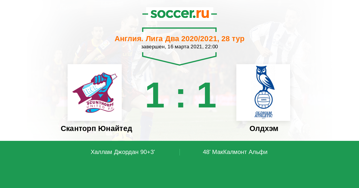 Протокол матча Сканторп Юнайтед против Олдхэм