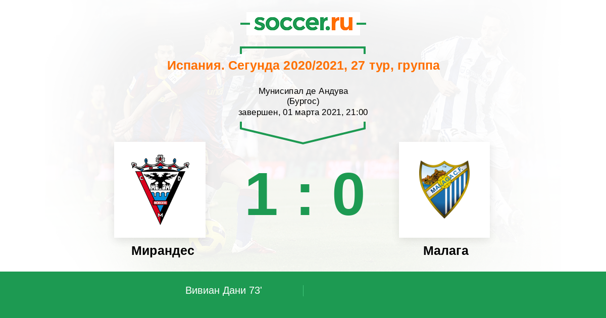 Протокол матча Мирандес против Малага