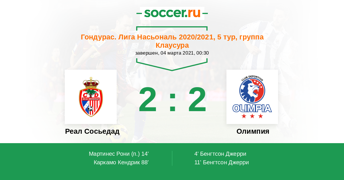 Протокол матча Реал Сосьедад против Олимпия