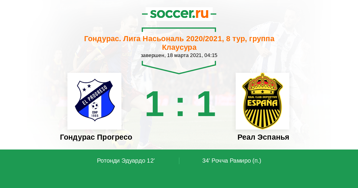 Протокол матча Гондурас Прогресо против Реал Эспанья