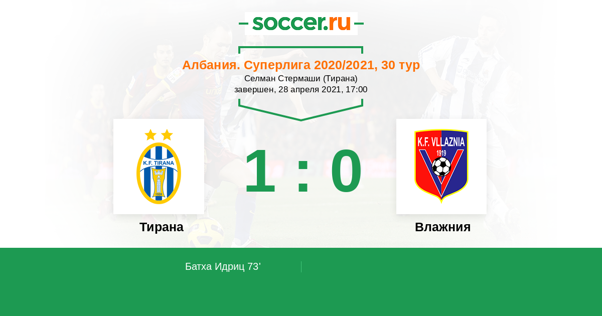 Протокол матча Тирана против Влажния