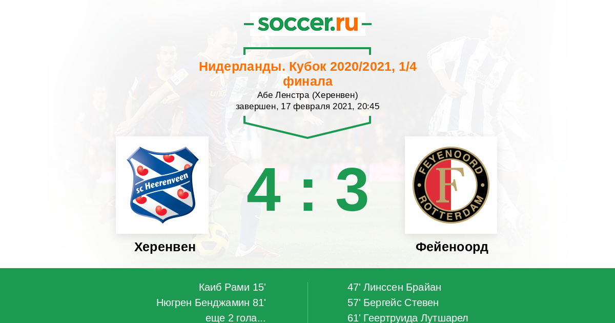 57' (1:2) Бергейс Стевен (10) (Линссен Брайан (11))