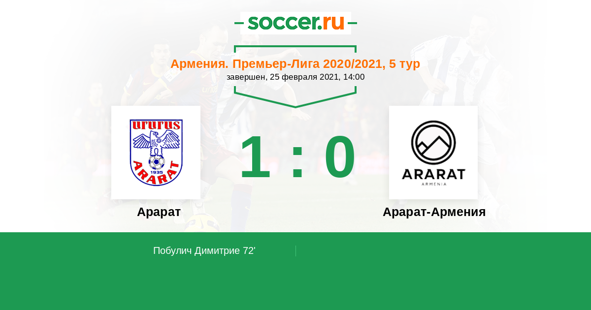Протокол матча Арарат против Арарат-Армения