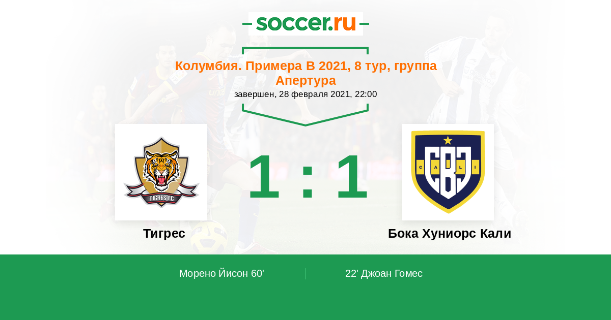 Протокол матча Тигрес против Бока Хуниорс Кали